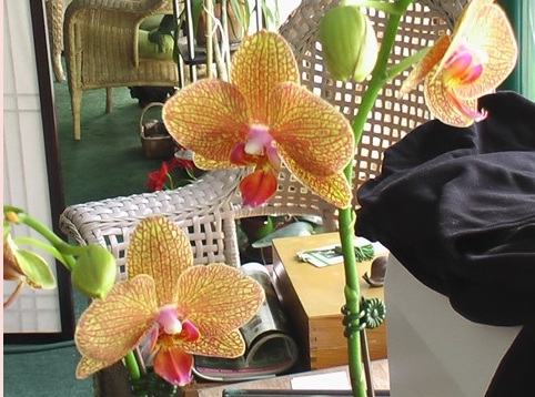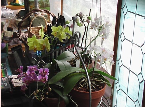 These photos are of my Phalaenopsis LAST season. They were lovely! They bloomed, and bloomed and then later they bloomed again. And then they somehow got infested with mealy bugs and right now they are living outside on the patio where they can be sprayed with a mild soap and insecticide solution every few days. And they are barely surviving.