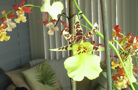 My favorite orchid - that I lovingly call "tiny dancers" - came in from the greenhouse this morning. The Oncidium family is very large and includes many flower varieties. The most common flower variety is often referred to as the "dancing lady". These Oncidium types have thin leaves, pseudobulbs, and branching sprays with flowers colored… Continue reading august orchids