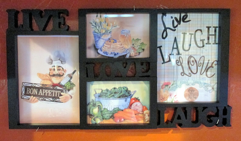 Brought it home and filled it with ‘kitchen’ art. Sorry about the reflection in the photo.