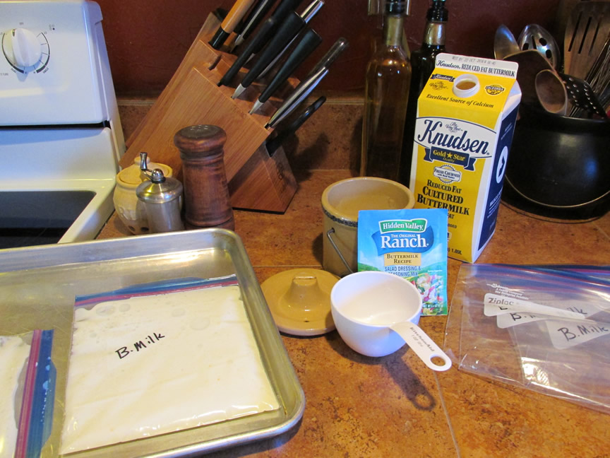 Granted, when you’re cooking for two people eight cups of buttermilk seems like a LOT. Dairy products don’t keep well over long periods of time and most recipes don’t call for more than one or, at best two cups, of buttermilk. But go ahead and buy that big ole carton of the stuff, cause it freezes like a champ and you’ll always have it on hand when you need it.