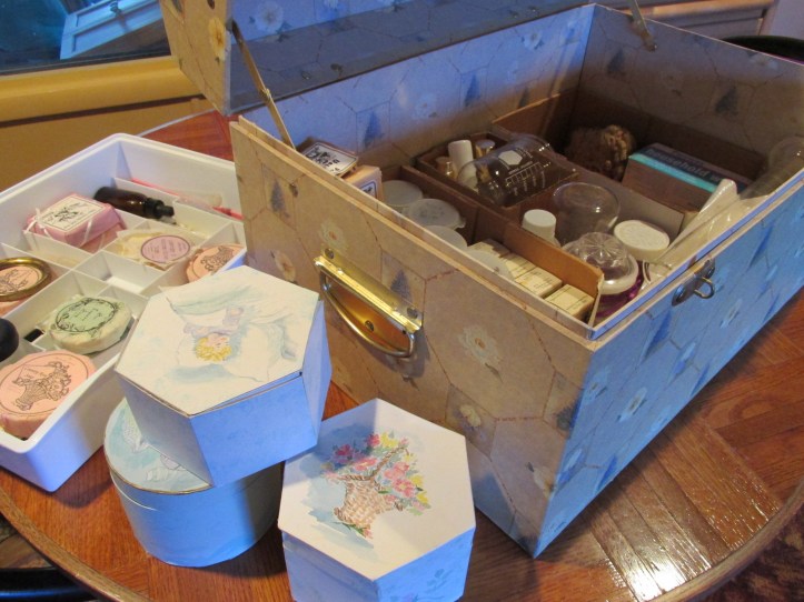 I spent the day yesterday moving “The Sparrow’s Home” cosmetic stuff out of the trunk it has lived in since we moved into the Cottage in ’96. All that’s left of it now resides in one drawer in the studio!