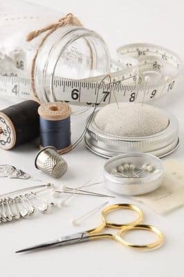 Now, I can just grab the “sewing trunk” and the sewing machine, set up the card table and SEW. Good for me!