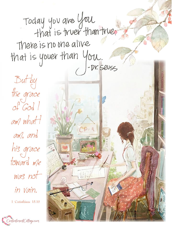 Today I need to remind myself (and all of you) that God designed, called and equipped His children to fulfill a purpose. I was a late bloomer, learning about His LOVE and mercy at 33. Now, after 40+ years of walking in His GRACE I can tell you without hesitation, “by the grace of God, I am what I am.” and learning to accept that fact helps to keep my mind fixed on His purpose for me. My prayer is that all of you will come to a place of peace with who you are as well.