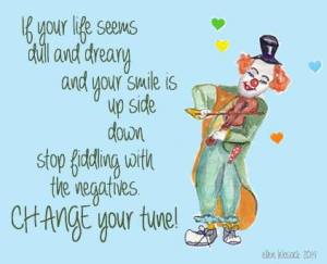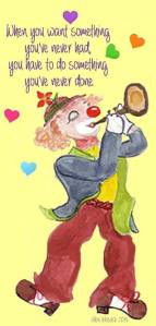 Some of my most recent work has been a collection of clowns; jolly, joyful, inspirational clowns. First I doodled ’em in my journal pages then photo-shopped ’em for facebook :