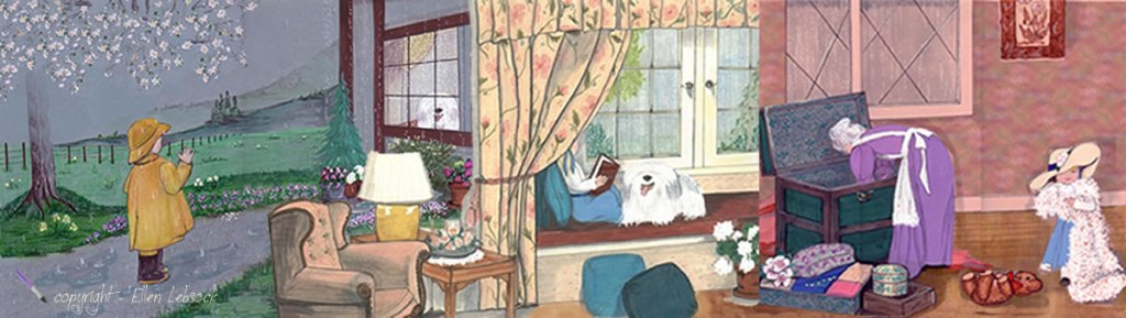Framed oil paintings abound—in stacks, hanging, and leaning against the walls and chairs. Watercolors are drying, tacked on the walls and laying about on any available flat surface. Desks, tables and shelves are covered with the wonderful clutter necessary to an artist’s work. Cups and glasses, pots and tins hold pencils, brushes, odds and ends. The place smells pungently of turpentine, linseed oil, and old books. This is where I imagine, dream, work and play.
