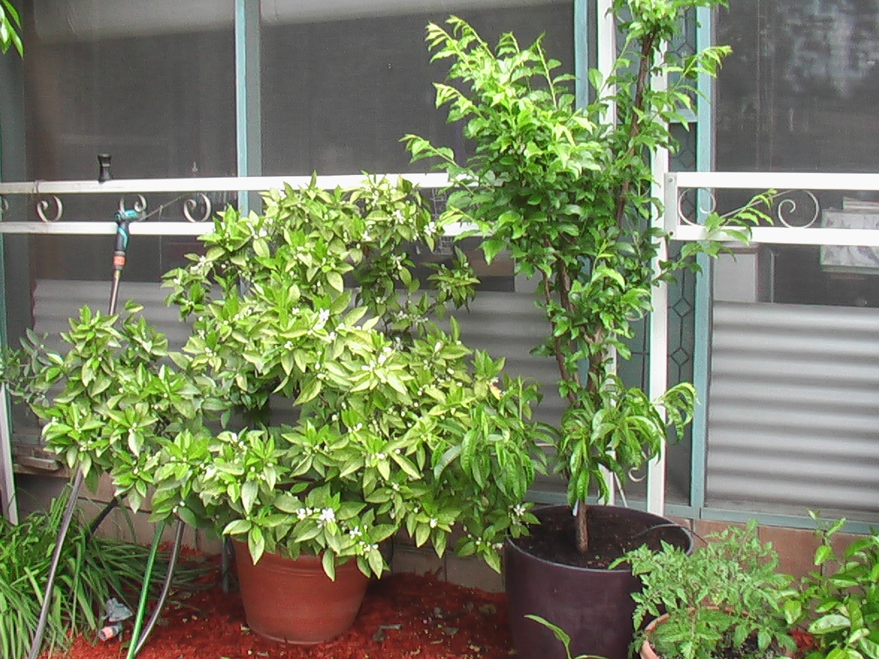 The lemon, orange and grapefruit provide amazing perfume in March and luscious fruit until June thus paying for their space.