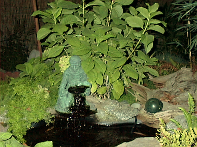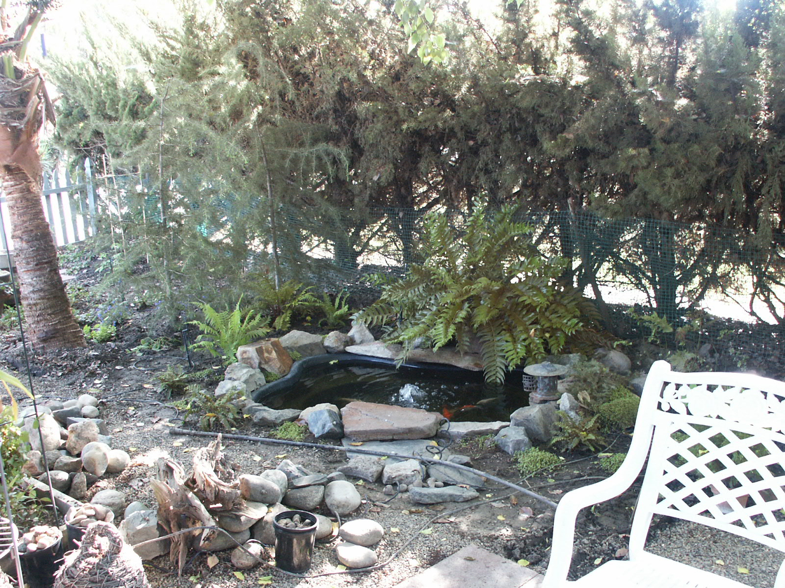 Even goldfish outgrow their allotted area eventually. So… a few summers ago, rather than get new fish, we opted for a larger pond., placing it closer to our favorite seating area to bring the sound of running water more into focus. A very nice bonus when reading or resting on the small shaded patio.